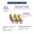 Il duo L-triptofano e Ashwagandha KSM-66 contribuisce a un rilassamento profondo, facilitando l'addormentamento e il recupero notturno. La Vitamina C, il Selenio e il Complesso di vitamine B agiscono come difesa contro lo stress ossidativo, mentre la Curcuma e il Pepe nero BioPerine® ottimizzano la flessibilità articolare e l'assorbimento dei micronutrienti essenziali. I probiotici SynbÆctive® Sport Max offrono una protezione antinfiammatoria e una modulazione attiva dell'immunità: lo studio clinico condotto su adulti sportivi mostra una diminuzione delle infezioni e un miglioramento delle difese fisiologiche naturali.